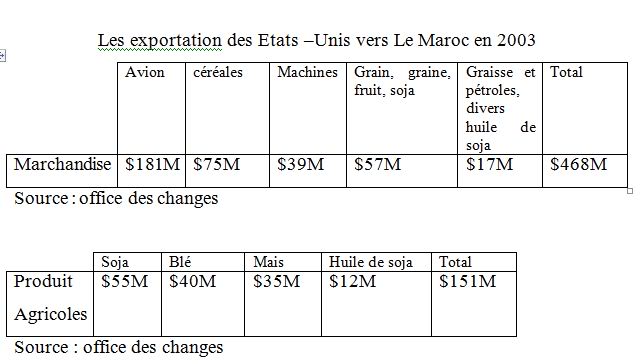 Les exportation des Etats –Unis vers Le Maroc en 2003