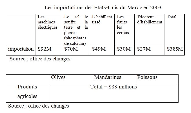 Les importations américaines en provenance du Maroc représentent une toute aussi petite proportion des importations totales américaines (0,04%).