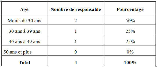 Nous avons retenue comme échantillon, 4 responsables qui président des caractéristiques différentes.
