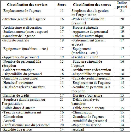-Total 3823 -Total 3823Après classification des services par ordre d’importance, on constate que les services principaux auxquels les clients cherche à obtenir plus de satisfaction sont: Les guichets automatiques, la rapidité, l’emplacement, la file d’attente, et le professionnalisme du personnel alors que tout ce qu est physique est peu important pour eux, ce qui explique que les clients s’intéressent sur la qualité de services et n’ont plus de ce qui l’entoure.