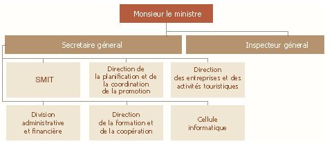 Le ministère du tourisme comprend, outre le cabinet du ministre, une administration centrale et des services extérieurs.