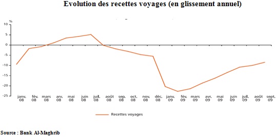 Dans ces conditions les recettes de voyages se sont contractées pour s’établir à 55,4 milliards de dirhams, soit une baisse de 5,6% au lieu d’un accroissement de 11% en 2007 et de 30% en 2006.