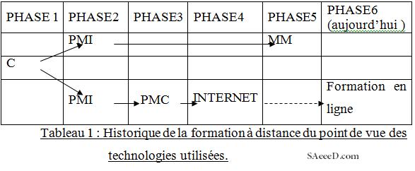 Tableau 1 : Historique de la formation à distance du point de vue des technologies utilisées.