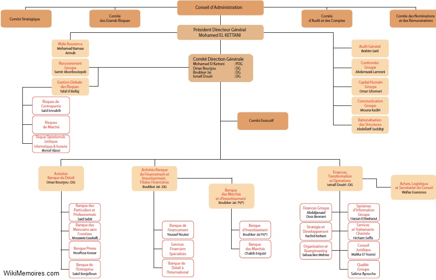 La Wafabank comptait 2530 collaborateurs, son PDG était Mr Abdelhak BENNANI (qui a démissionné après l’annonce de la fusion) et le vice président était Saâd Kettani.