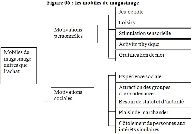 Les motivations sociales du magasinage sont représentées dans a figure 06. Ces motifs concernent le désir d’interaction en différents groupes.