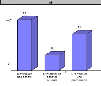 D’après le graphe et le tableau, on constate qu’un groupe de consommateurs fréquente les grandes surfaces de distribution pour effectuer des achats (49,2%), et l’autre pour effectuer une promenade.