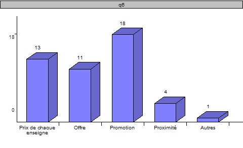 D’après le tableau et le graphe, on constate que le prix de chaque enseigne est le critère primordial qui pousse le consommateur à changer son enseigne (39%), suivi des promotions (27,1%), la proximité (20,3%) et l’offre (11,9%).