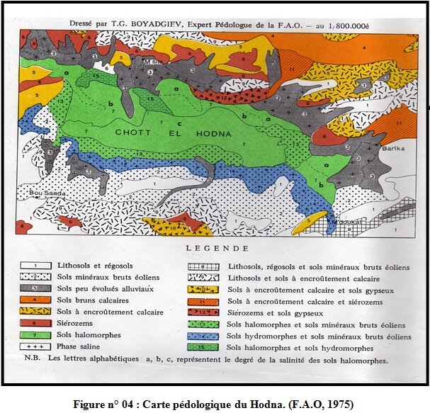 Figure n° 04 : Carte pédologique du Hodna. (F.A.O, 1975)