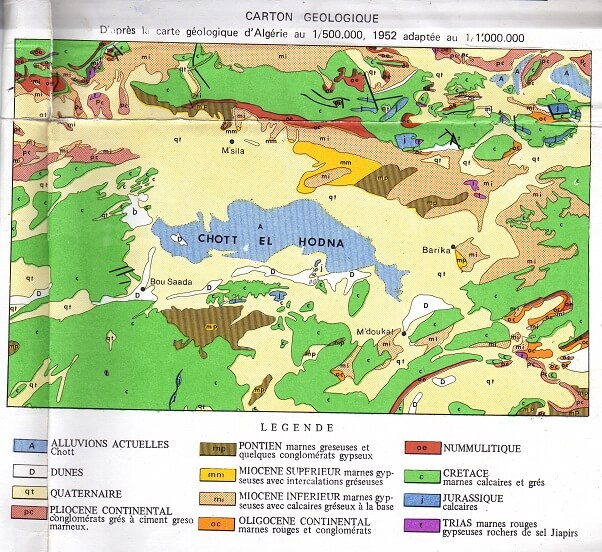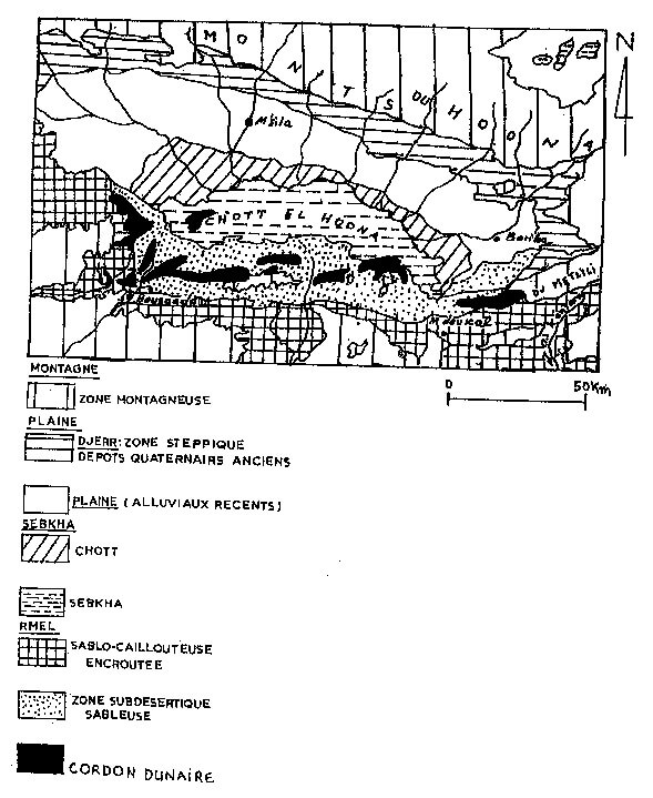 Selon la figure n° 02, établie par Le Houerou et Claudin (1972), la géologie d’El-Hodna présente :
