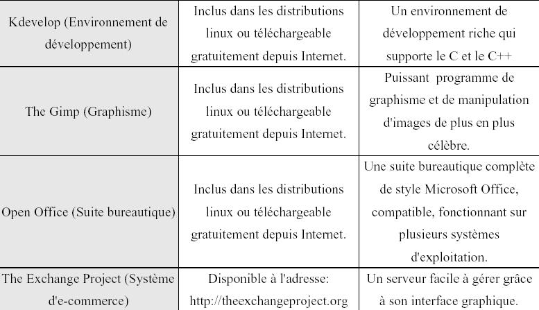 Voici donc les produits qui seront installés sur les ordinateurs pour la solution Linux32