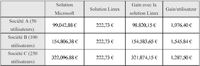 Comparaison chiffrée de solutions de type Microsoft et de type Linux