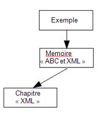 <exemple> <memoire> <titre_memoire>ABC et XML</titre_memoire> <chapitre> <titre_chapitre>XML</titre_chapitre> </chapitre> </memoire> </exemple>