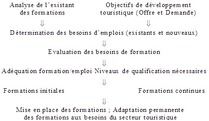 Mise en place des formations ; Adaptation permanente des formations aux besoins du secteur touristique