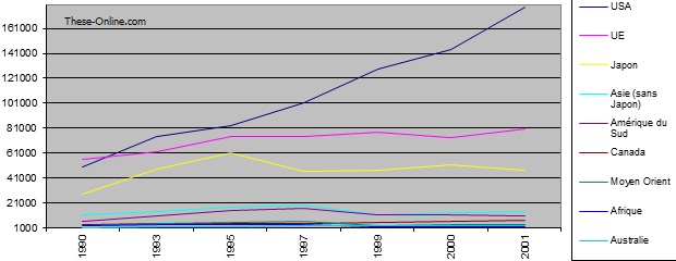 Figure 7 marché pharmaceutique mondial par zone géographique en 2001, source Leem (1)