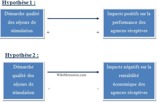 Cependant, peu de recherches ce sont intéressées à l’évaluation de la qualité des séjours de stimulation au sein des agences réceptives. Nos propositions de recherche correspondront donc à des présomptions sur ces types d’impacts. Nos hypothèses de recherche seront les suivantes :