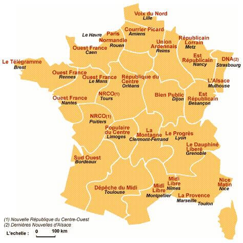 Source : carte réalisée à partir de l’étude « Presse payante Grand Public 2008 », OJD, juillet 2009.