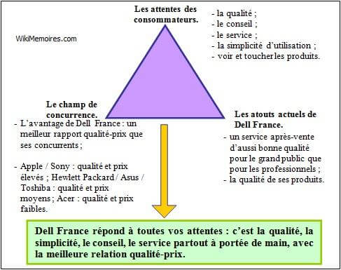 Ce positionnement répond aux attentes du public ciblé qui cherche la qualité, le conseil, le service, la simplicité d’utilisation et qui veut voir et toucher les produits avant de les acheter. Il est cohérent avec les atouts actuels de Dell France qui dispose d’un service après-vente d’aussi bonne qualité pour le grand public que pour les professionnels et qui commercialise des modèles fiables. Il permet à Dell France de se différencier de ses concurrents dans la mesure où il offre des produits d’une meilleure qualité que ses concurrents pour une gamme de prix équivalente.