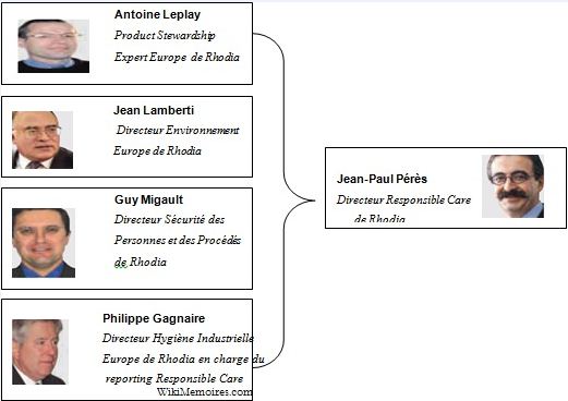 La direction Responsible Care est une des composantes de la direction industrielle. Elle s’exerce sur quatre grandes régions (Europe, Asie-Pacifique, Amérique du nord et Amérique du sud). Chaque région est dirigée par un responsable rattaché fonctionnellement au directeur Responsible Care (M. Jean-Paul Pérès) la direction Responsible Care est composée de 4 experts :
