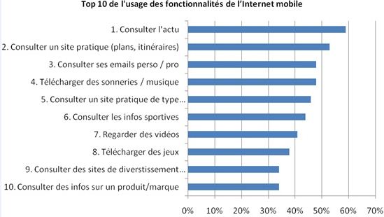 Le top 10 des fonctionnalités de l’Internet mobile se diversifie. Les sites de services et de divertissement arrivent en tête du classement avec la consultation d’emails. Les internautes mobiles cherchent à présent l’accès aux mêmes services que ceux disponibles sur Internet.
