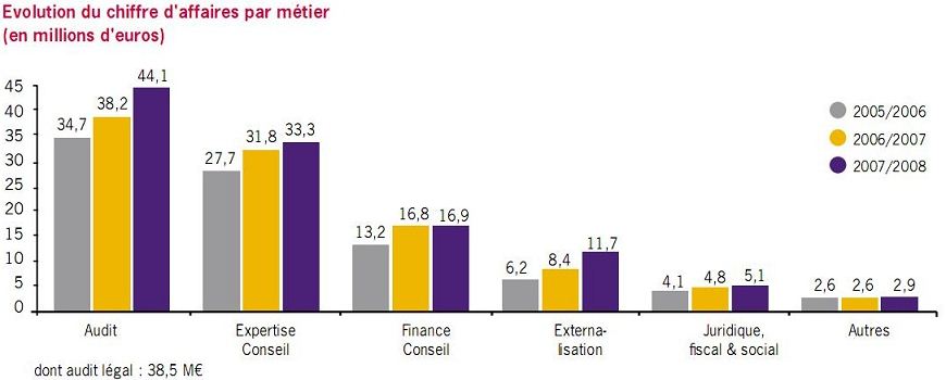 Avec près de 44 millions d’euros de chiffre d’affaires en 2008, l’audit se positionne comme le métier principal du groupe avec 40% du chiffre d’affaires global.