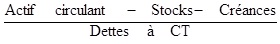 FR = Actifs circulant – Dettes à court terme