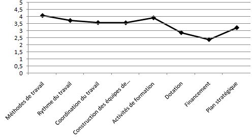 | Construction des équipes de travail | 3,55 | 4,00 | 1,16 | 95 |