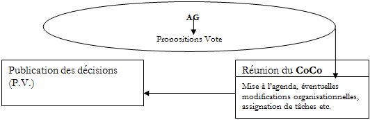 i. Au niveau de la coordination : Il y a une « gestion des membres » par la coordination. On essaye de faire tourner le système, d’en améliorer le fonctionnement.