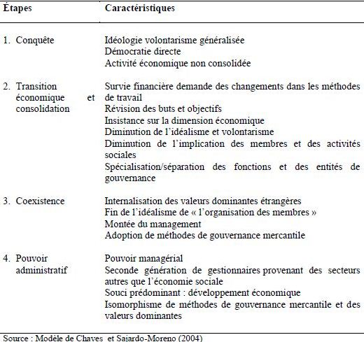 Si le modèle de Chaves et Sajardo-Moreno (2004) a été construit dans une étude concernant la gouvernance, l’idée derrière le processus de transformation des entreprises d’économie sociale semble suffisamment pertinente pour le répliquer dans une étude comme la nôtre sur les pratiques de GRH.