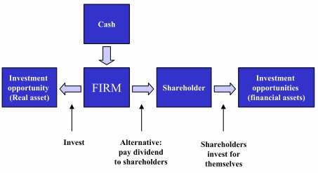 Une autre manière de démontrer l’intérêt des entreprises à ne pas investir dans les titres cotés est tout simplement de concevoir cette opération d’un point de vue purement financier. Une entreprise a la possibilité de garder et de réinvestir sa trésorerie ou de la rendre à ses actionnaires sous forme de dividendes ou rachat d’actions.