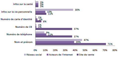 Les internautes trouvent légitime de donner leurs coordonnées de base (nom et prénom) aux sites de vente et dans une moindre mesure aux acteurs de l’Internet et aux réseaux sociaux.