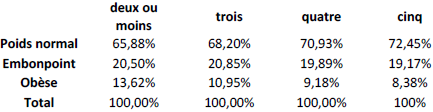 Poids normaltrès fort67,50 %fort68,92 %faible66,08 %très faible65,31 %