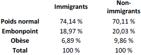 En revanche, il semble que plus la durée d’immigration est lointaine et plus ce niveau d’obésité va avoir tendance à augmenter, ce qui peut-être dû aux nouvelles habitudes de vie Nord-Américaines acquises.