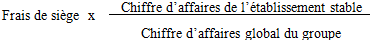 Frais de siège x Chiffre d’affaires de l’établissement stable / Chiffre d’affaires global du groupe