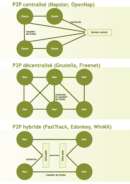 Le schéma ci-dessous indique la principale architecture des réseaux P2P35: