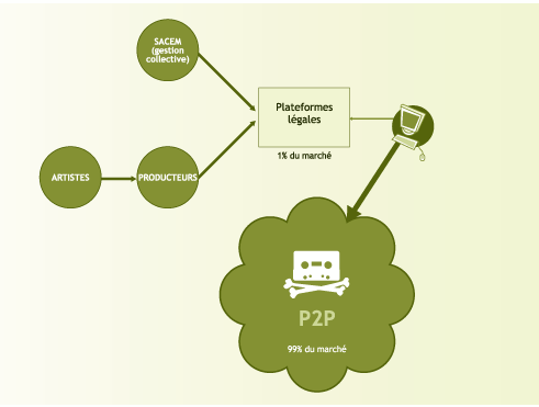 Le schéma ci-dessus représente la circulation de la musique en ligne.51