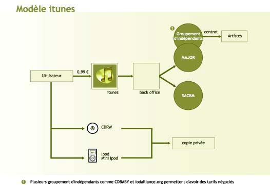 Schéma représentatif du modèle iTunes réalisé par Tarik Krim, « le P2P un autre modèle économique pour la musique », Etude remise à l’Adami, 16 juin 2004.