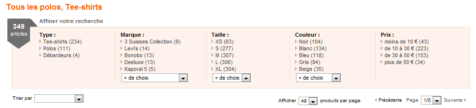 Figure 5: exemple de filtre de tri sur 3suisses.fr