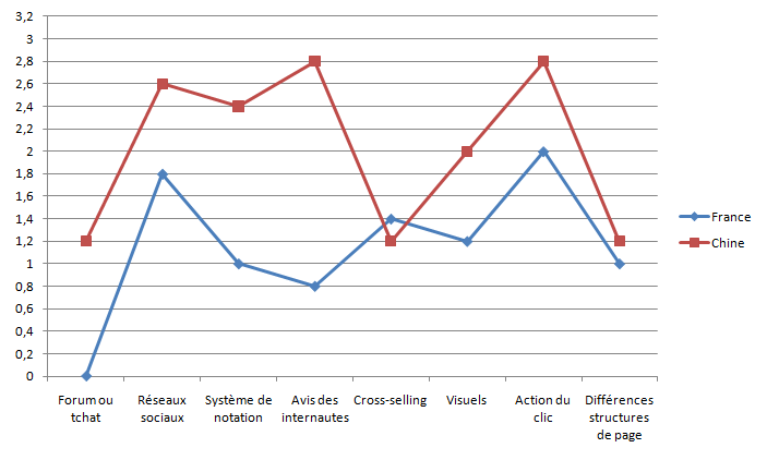 A la lecture des graphiques ci-dessus, l’aspect collectiviste domine largement au sein des sites chinois. En effet, si quelques sites proposent des forums de discussion, la grande tendance au sein d’une entreprise e-commerce consiste à privilégier la communication entre consommateurs autour des produits. Pour établir une bonne stratégie visant le groupe, les marques chinoises ont choisi de se tourner vers des options de partage généralement vers Renren, QQ, Weibo et Kaixin qui sont respectivement les équivalents chinois de Facebook, MSN, Twitter et LinkedIn.