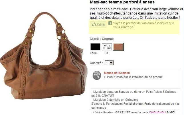 La fiche produit de 3suisses.fr met en avant le bouton "j'aime" de Facebook