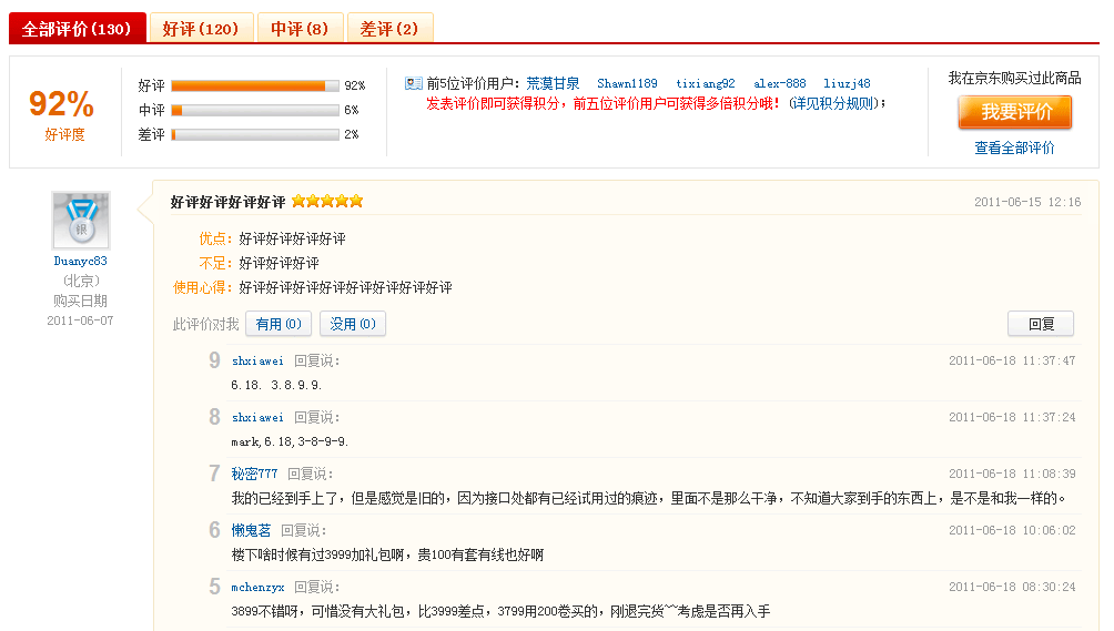Le système de commentaires de 360buy.com est judicieusement élaboré et offre un panel de données chiffrées sur les avis des internautes.