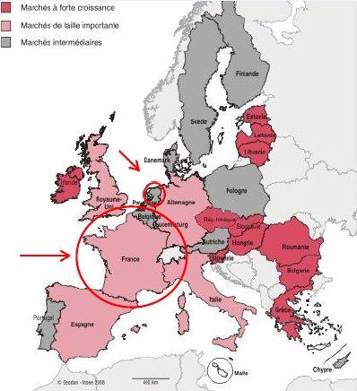 La France étant un grand pays rural avec un habitat dispersé de petits villages et villes, les catalogues sont depuis longtemps un outil pratique pour ces consommateurs-ci. La vente par correspondance (VPC) se déroule par une demande en domiciliation et la livraison des produits a lieu sans nécessité de se déplacer, ce qui est un gain de temps et d’argent considérable. En 1993, on estimait qu’un foyer français sur deux achetait régulièrement par VPC 37 . Avec l’avènement d’Internet et son développement rapide, les foyers français peuvent également commander leurs marchandises sur le web, ce que nous avons traité déjà dans le paragraphe 1.1.3. Le succès économique grandissant en France connaît plusieurs raisons et il s’agit d’un développement de long terme. Premièrement, l’aide financière américaine lors du Plan Marshall entre 1949 et 1952 peut être marquée comme le début du développement d’après-guerre. Deuxièmement, la France s’est rendue compte des changements dans les conjonctures politique et économique mondiales. Les choix énergétiques et les centres nucléaires ont confirmé le sens pour l’autonomie. Finalement, les Français ont un esprit d’initiative grâce auquel les grandes sociétés et les PME ont pu se développer et par conséquent, la France est parmi les plus grand exportateurs de l’Europe et dépasse les Pays-Bas, le Danemark et la Belgique et presque l’Allemagne 38. De plus, le marché français est précurseur dans plusieurs domaines sur le plan européen. Selon le Journal du Net, il y a bien des marchés qui sont en plein développement : le self-déménagement, le pressing écologique, l’épicerie fine, le courtage en travaux, les potagers urbains, les piscines naturelles, les magasins de l’occasion, l’efficacité énergique, le recyclage, la nourriture hallal et la vente à emporter sont de nombreux exemples de ces marchés croissants 39 . De plus, étant un pays rural, la France a beaucoup de produits alimentaires tels que le vin, les grains et le fromage 40. Comme indiqué dans la carte 1, la France se trouve parmi les marchés de taille importante et a donc du potentiel dans le domaine du commerce international. Pourtant, même si elle se trouve dans cette position, la France a quand même une image de fermeture et xénophobie 41. Dans le prochain paragraphe, nous traiterons l’analyse socio-historique que fait la France ce qu’elle est dans nos jours.