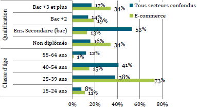 Graphique 9. La répartition des effectifs du e-commerce selon qualification et classe d’âge 51.
