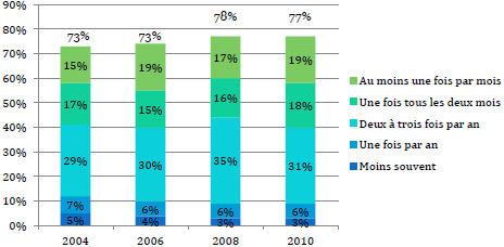 Graphique 10. La fréquence avec laquelle les Français âgés de plus que 18 ans font des ventes par téléphone, courrier ou Internet 52.