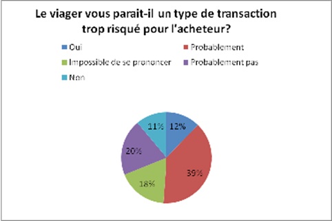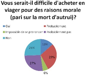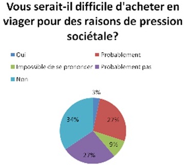 Cette assertion est confirmée par notre questionnaire, puisque 42 % des sondés affirment que l’achat en viager leur serait plus difficile pour des raisons morales (oui :13%, probablement : 29%).