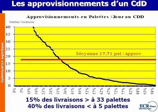 « Seulement 15 % des livraisons sont supérieurs à 33 palettes et 40 % des livraisons sont supérieurs à 5 palettes ».