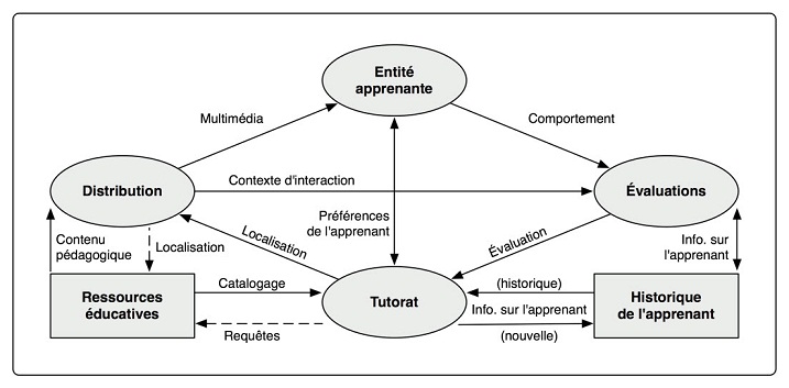 • * quatre processus : l’entité apprenante, les évaluations, le tutorat et la distribution des ressources éducatives;