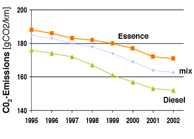 Les constructeurs automobiles européens se sont engagés à abaisser le taux moyen d’émission de gaz carbonique pour l’ensemble de la gamme des véhicules vendus à 140 g/km en 2008 (pour mémoire, les véhicules les plus efficaces vendus en 2000 avaient un taux de 120 g/km)