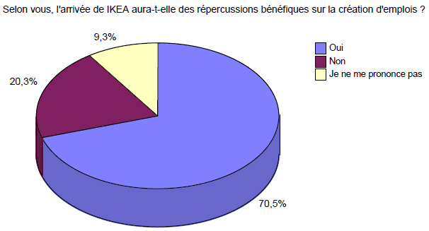 En matière de création d’emplois, 70% pensent qu’IKEA aura des répercussions bénéfiques tandis que 20% pensent le contraire (cf. graphique 16).