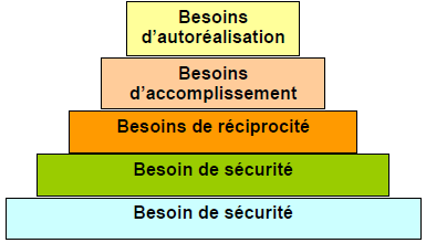 Ces besoins sont détaillés dans la pyramide de MASLOW qui peut être schématisée comme suit :