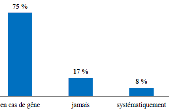 Soixante-quinze pour cent (75%) des sages-femmes n’orientaient leurs patientes chez un chirurgien-dentaire qu’en cas de manifestation de douleurs de la part de ces dernières.